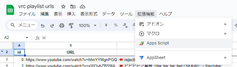 From the menu of the created sheet, click “Extensions > Apps Script”.