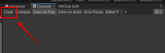 まずConsoleウィンドウを開き、左上の「Clear」ボタンを押しましょう。